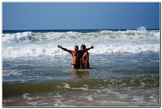 spogliamo, ci infiliamo un costume e via di corsa sulla lunga spiaggia deserta
